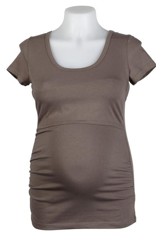 Nurse in comfort and ease in this super soft tee. Features side gathering and a convenient front panel for discreat nursing. Superior quality fabrication ensures it will wash and wear extremely well throughout your entire pregnancy becoming a wardrobe staple item. Available in a variety of colours. (Fabrication: Cotton, Elastane)